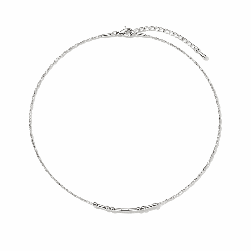 Draag jouw persoonlijke boodschap in stijl met deze elegante zilveren morsecode ketting. Elk sieraad wordt handgemaakt op maat, met jouw gekozen woord, naam of datum. De boodschap wordt subtiel verwerkt in morsecode met fijne zilverkleurige kralen en staafjes. Minimalistisch, stijlvol en uniek.
